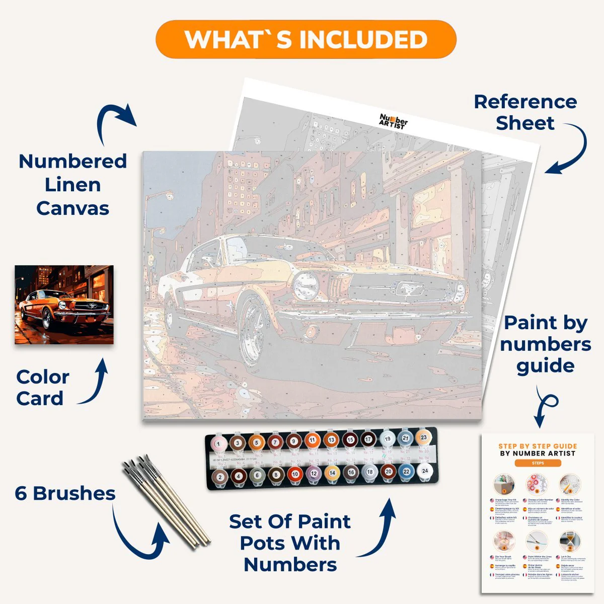 Get your creative juices flowing with Classic Shine! This unique paint by numbers kit features a striking mustang on the street, illuminated by street lights. While you paint, take a break and practice some stress-relieving meditation. Find your inner peace as you create a masterpiece.