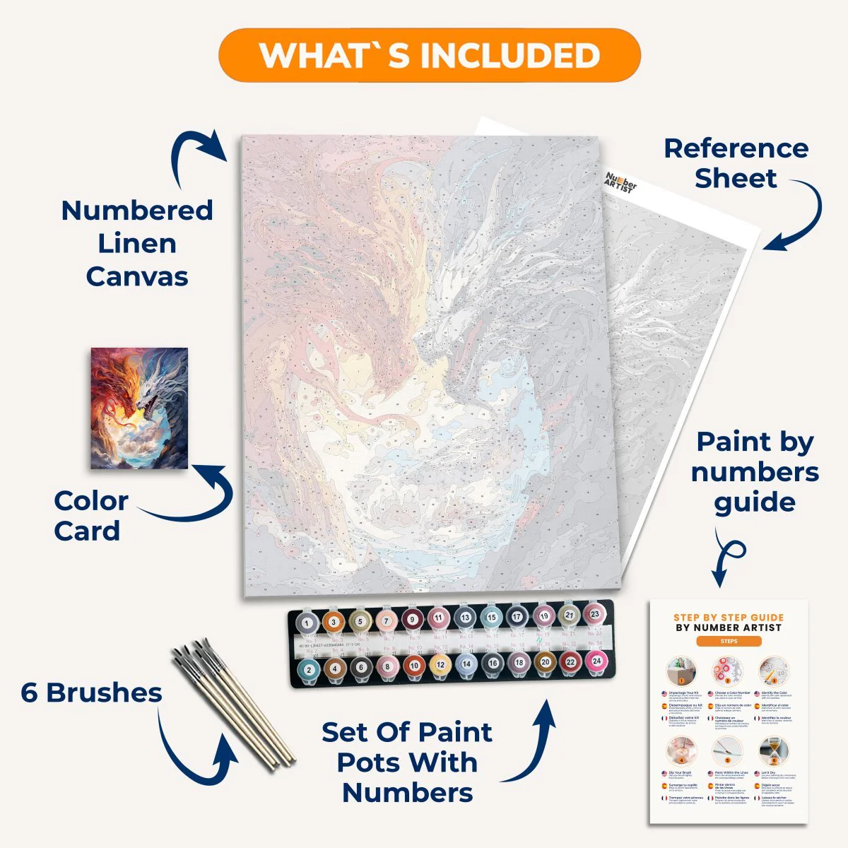 Unleash your inner artist and zen with Duality of Fire and Ice. This kit includes everything you need to create a masterpiece with the calming practice of paint by numbers. Perfect for meditation, this painting experience will leave you relaxed and proud of your creation.