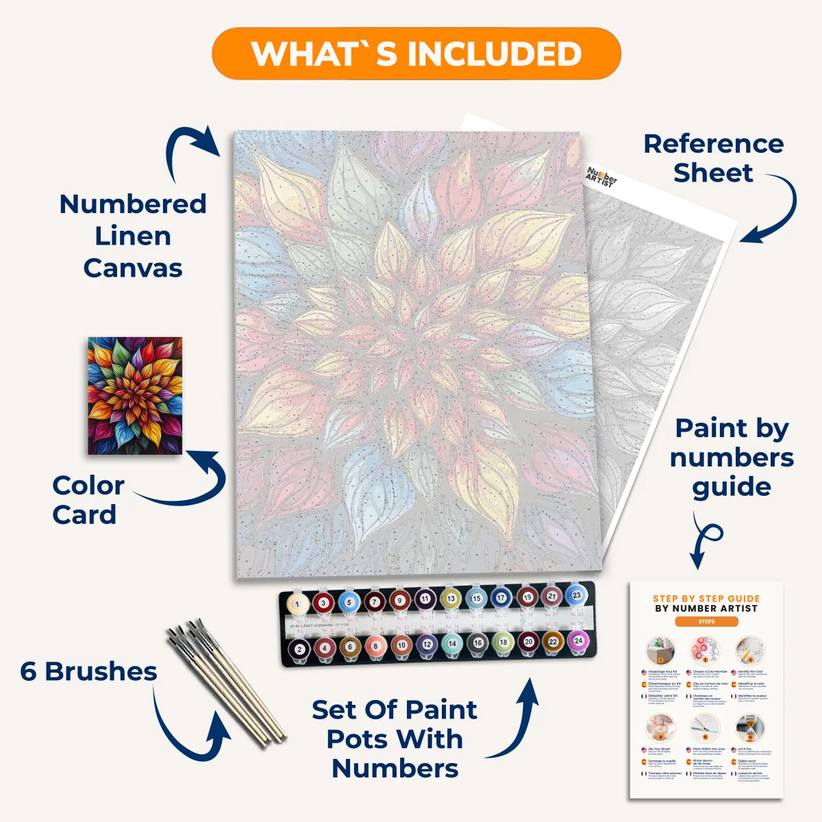 Let your creativity bloom with Kaleidoscopic Foliage! This paint by numbers kit combines the meditative practice of painting with a colorful blooming flower design, making it the perfect way to relieve stress and add some color to your life. Embrace your inner artist and watch your masterpiece come to life!