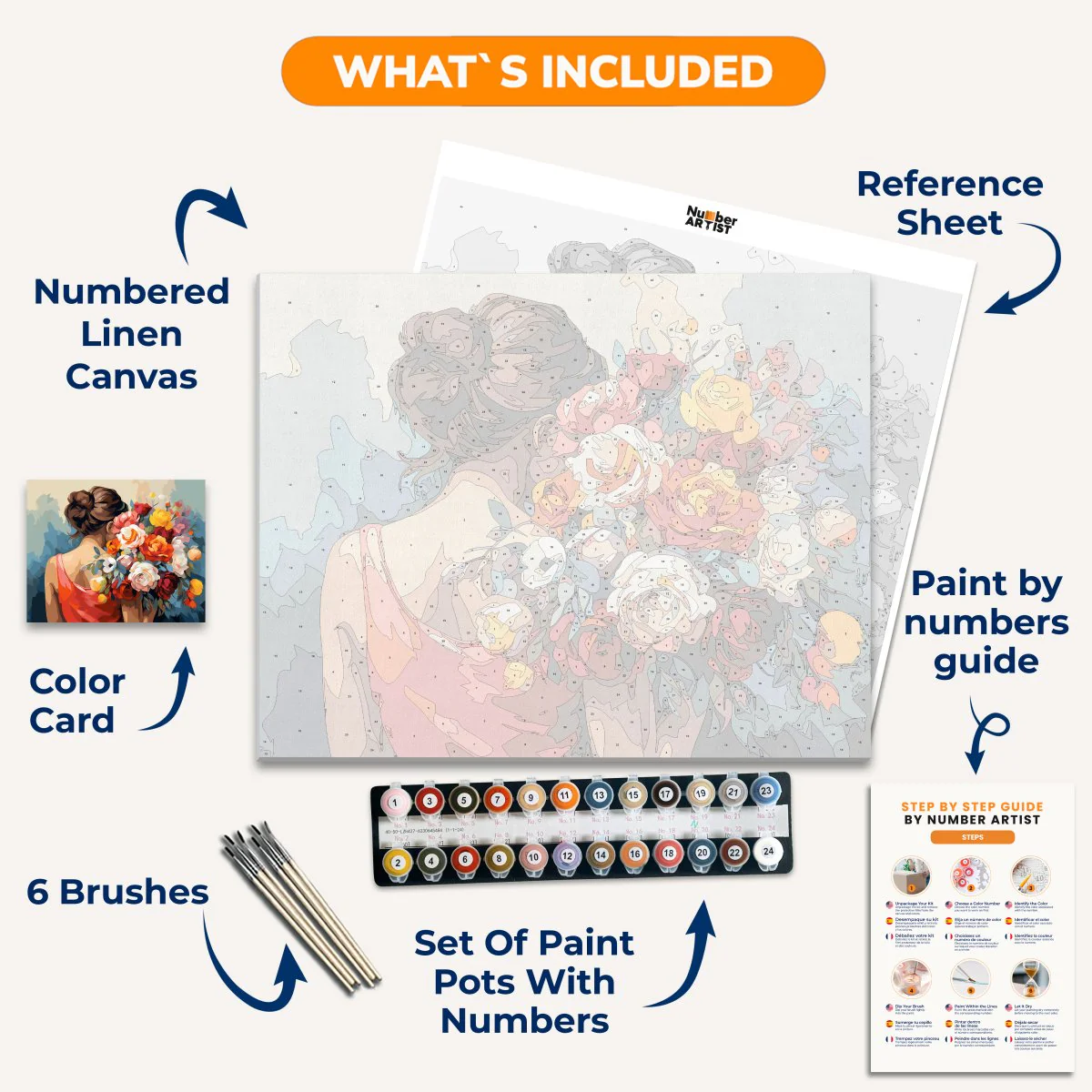 Unleash your creativity and find inner peace with Lady in Red, a unique paint by numbers kit. Meditate and express yourself through painting as you bring to life a woman holding a bouquet of colorful flowers. No artistic experience needed, just a fun and relaxing activity for all!