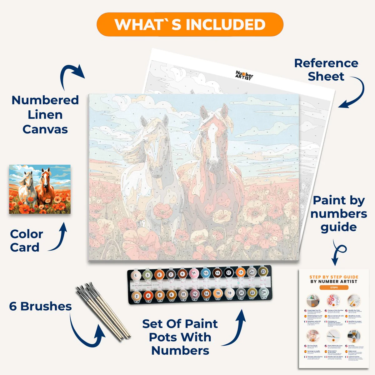 Unleash your creativity with Meadow Mates, a unique combination of paint by numbers and meditation. Relax and paint a beautiful landscape filled with blooming flowers and majestic horses, surrounded by open expanses. Perfect for horse lovers and nature enthusiasts.