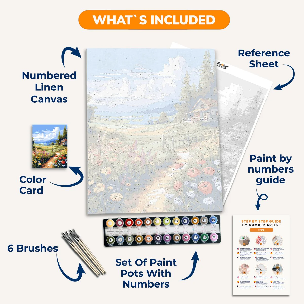 Unleash your creativity while finding inner peace with Meadow's Embrace. With our paint by numbers kit, you can meditate and paint a beautiful landscape of a house surrounded by a meadow full of vibrant flowers. Experience the calming effects of painting and bring your own unique touch to this picturesque scene.