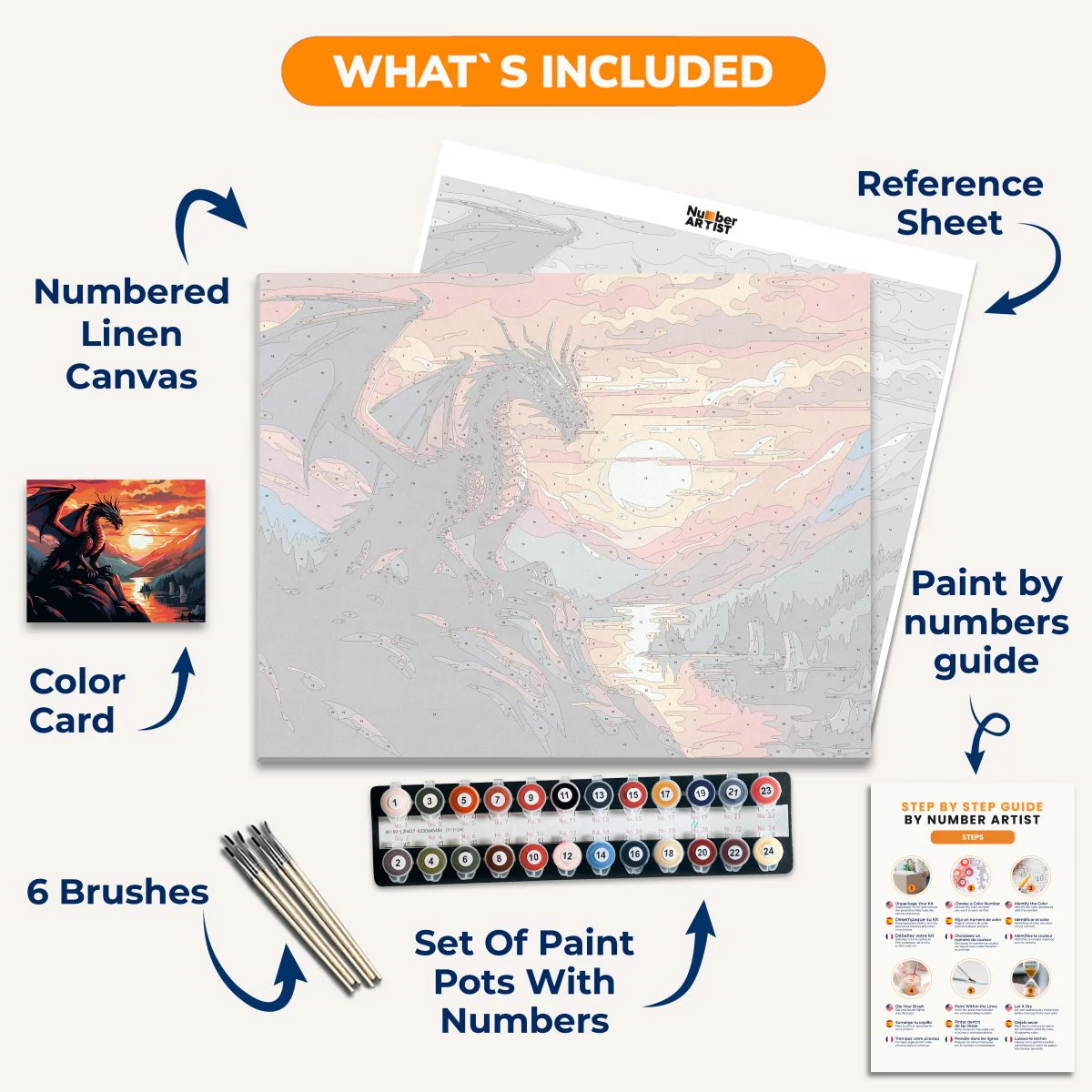 Unleash your inner artist and zen with Twilight Guardian. Channel your creativity with paint by numbers and find peace through meditation while painting a majestic dragon in a mountain sunset. Let this unique and tranquil experience transport you to another world.