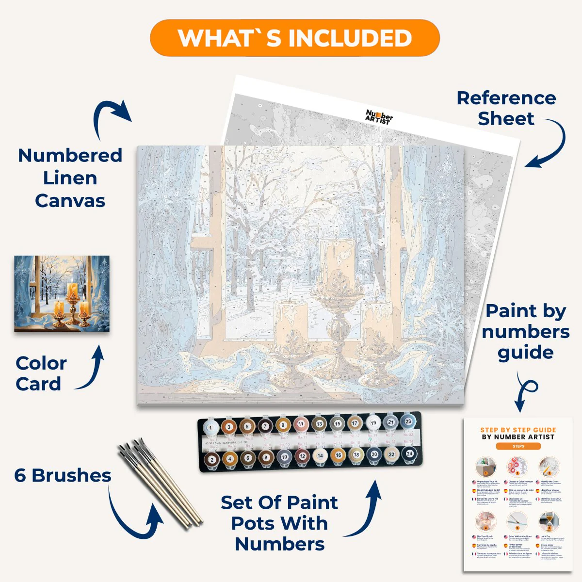 Unwind and find your creative flow with Winter's Warmth. This unique kit includes paint by numbers for a rustic winter scene, a meditation guide, and the ambiance of candles on a frozen window. Experience the tranquil beauty of winter while painting in a cozy, rustic atmosphere.